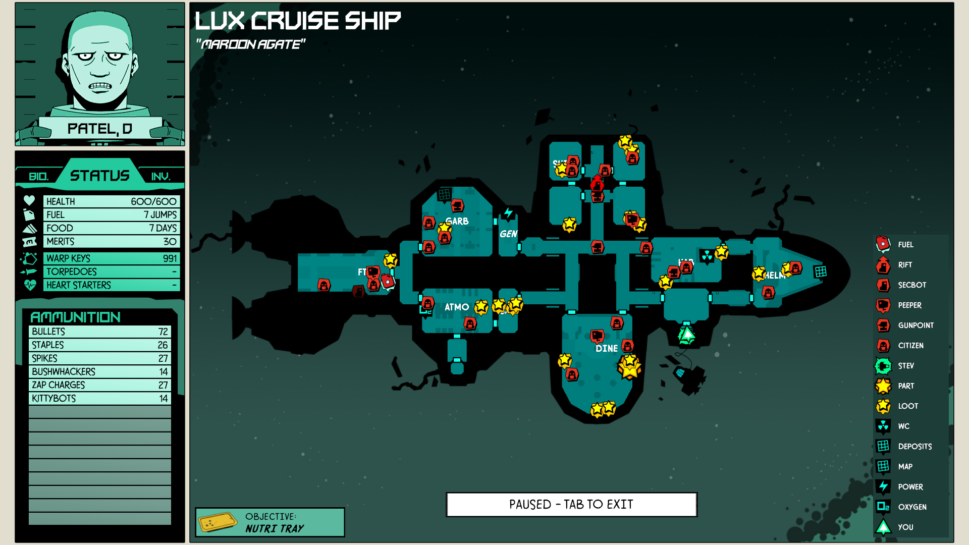 | Void Bastards Overview Forget everything you know about first-person shooters: Void Bastards asks you to take charge, not just point your gun and fire. Your task is to lead the rag-tag Void Bastards out of the Sargasso Nebula. You make the decisions: where to go, what to do and who to fight. And then you must carry out that strategy in the face of strange and terrible enemies. On board derelict spaceships you’ll plan your mission, taking note of the ship layout, what hazards and enemies you might encounter and what terminals and other ship systems you can use to your advantage.. Move carefully through the dangerous ships, searching for supplies and manipulating control systems. React to what you find – will you detour to the generator to bring the power back online or will you fight your way into the security module to disable the ship’s defenses? Choose carefully when to fight, when to run and when just to be a bastard. Use your hard won supplies to improvise tools and weapons, from the distracting robo-kitty to the horribly unstable clusterflak. Navigate your tiny escape pod through the vast nebula. Flee from void whales and pirates, and politely avoid the hungry hermits. All the while you must keep scavenging for the food, fuel, and other resources that keep you alive. Void Bastards features a 12 to 15 hour campaign that you can complete with an endless supply of prisoners, each with their own unique traits. When one dies, another steps forward to carry on the fight. Don’t worry though, as any crafting progress you’ve made is retained from one to another. |